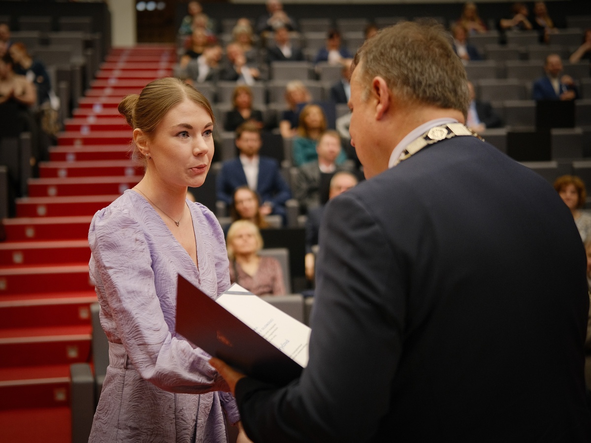 Za bakalářské a magisterské diplomové práce bylo oceněno sedm studujících. Cenu získala například Michaela Zapletalová, nyní již absolventka pedagogické fakulty, za práci Analýza jazykových deficitů u osob s neurodegenerativním onemocněním mozku. „Ceny od pana rektora si velmi cením. Výzkumu se i díky projektu TA ČR věnuji nadále,“ uvedla absolventka. Dále si čestné uznání rektora za odborný článek převzalo i 16 doktorandů a doktorandek z 8 fakult UP.