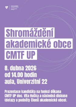 Podle Statutu CMTF UP v Olomouci (část II., čl. 3) svolávám shromáždění akademické obce, které se uskuteční ve středu 8. dubna 2026 od 14.00 hodinv aule CMTF, Univerzitní 22