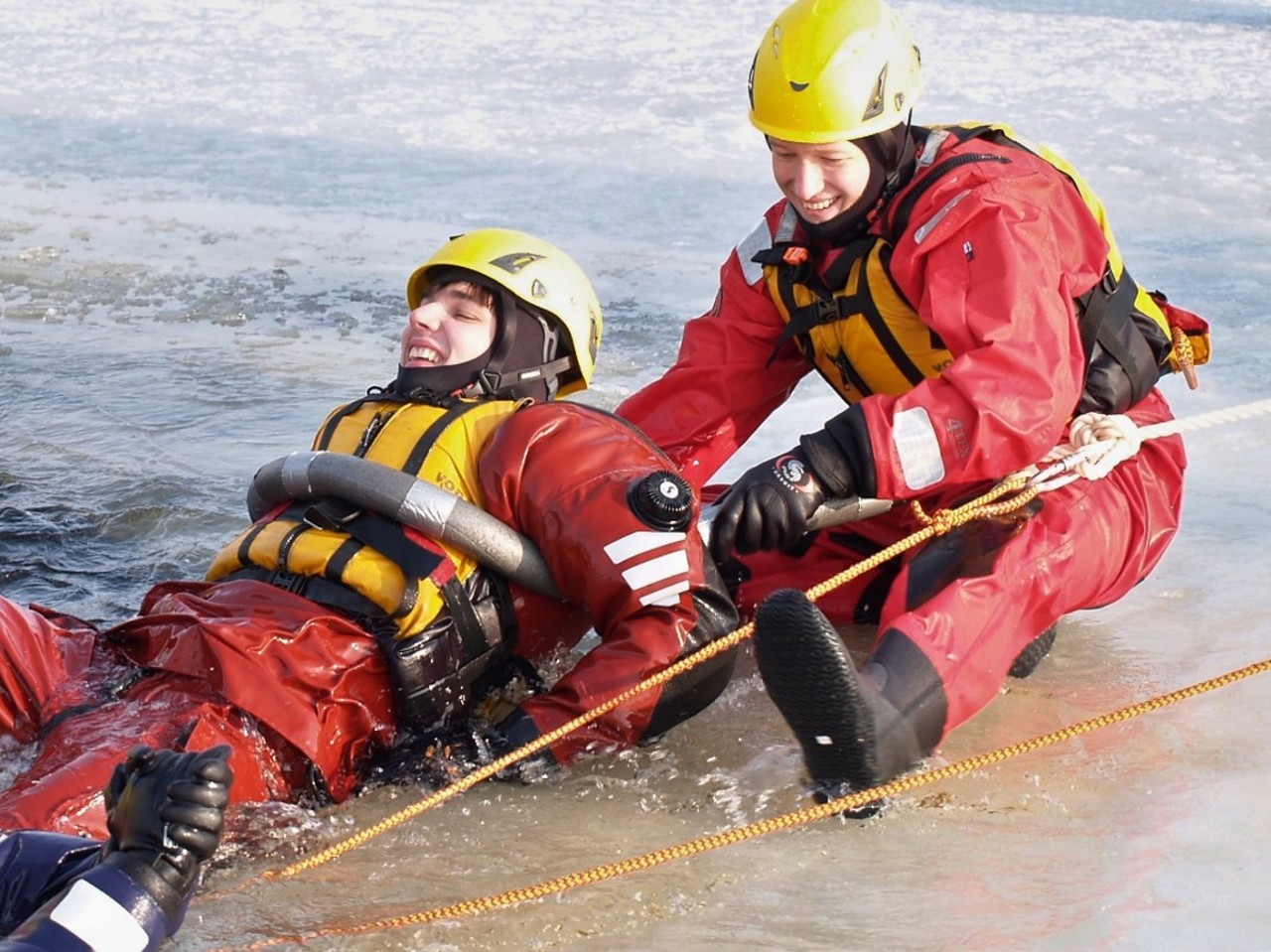 Ve spolupráci s vodními záchranáři v Dolní Vltavici na ně čekal intenzivní program, během kterého se seznámili s tím, jak se dostat z vody, pokud se sami propadnou, a především se způsoby záchrany druhé osoby za pomoci vlastních sil i nejrůznějších pomůcek. Jak se k topícímu se dostat, co využít, v suchém obleku i v civilu. Mrazy a tloušťka ledu kurzu přály, každé ráno prý museli vysekanou díru pro praktický nácvik obnovovat.