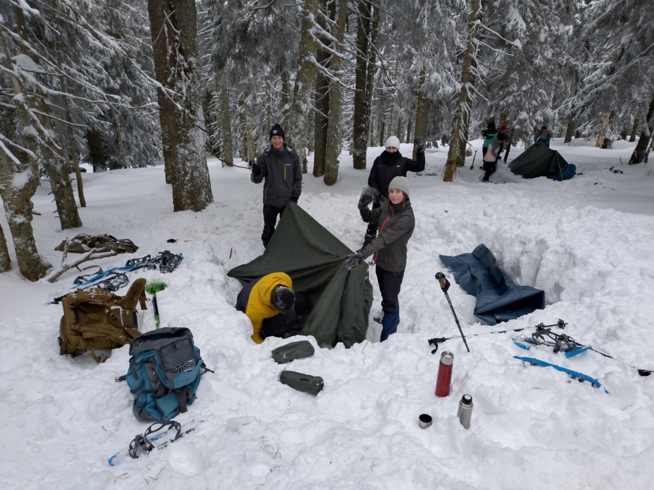 „Příprava nosítka byla velmi zajímavá zkušenost. Použijí se lana, celta, spacáky se to vystele, aby podchlazený člověk mohl být v relativním pohodlí. To bylo velmi praktické. Poprvé jsem si vyzkoušel také rozdělávání ohně ve sněhu, to byl můj velký úspěch,“ prozradil Karel Večerka s tím, že spát venku je zvyklý z táborů a různých víkendovek, takže věděl, jak se do -12 stupňů připravit.