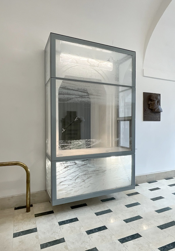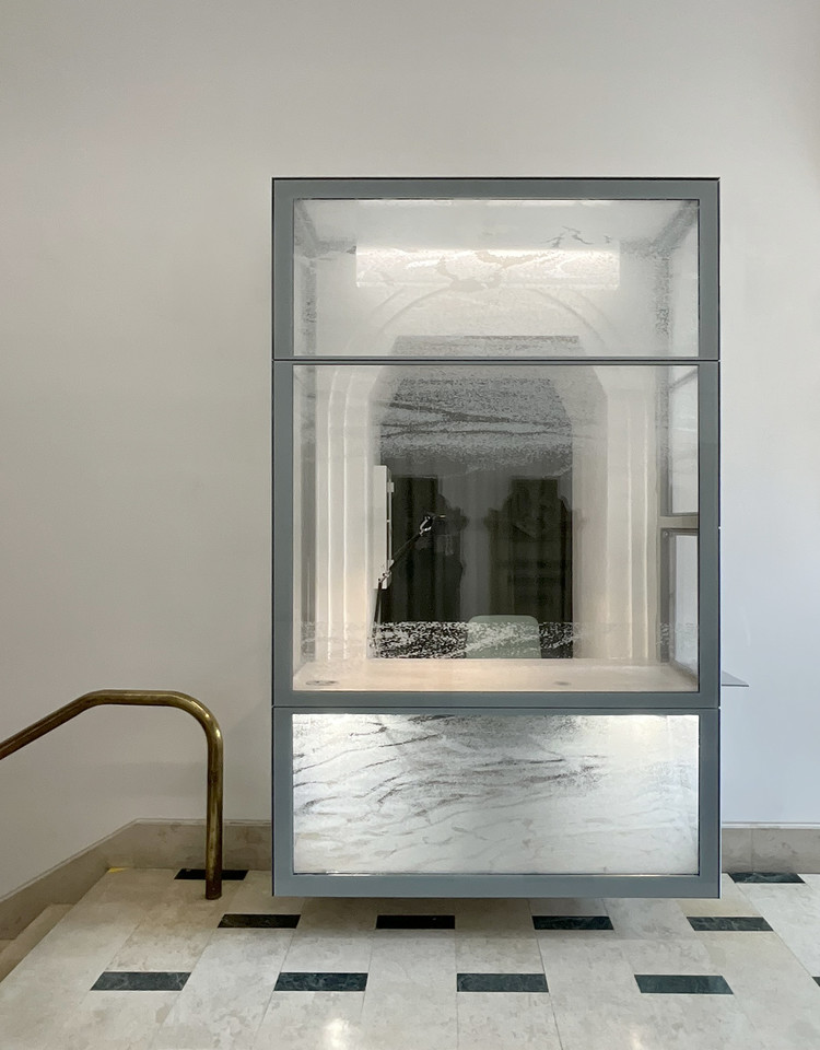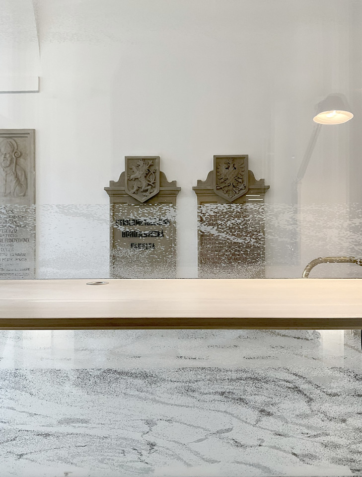 „Klenební prostory jsme očistili od druhotných příček, doplnili jsme zde kamennou dlažbu a navrhli novou panoramatickou masku vrátnice. Jde o prosklený kvádr levitující nad vstupní podlahou, jehož skla jsou potištěna prostorovou snovou strukturou dle návrhu výtvarnice Lady Semecké,“ uvedl architekt Lukáš Blažek.