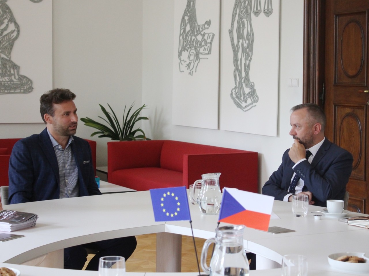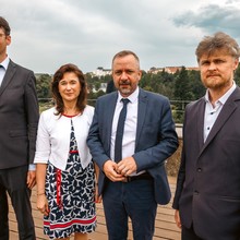 Rektor Univerzity Palackého Michael Kohajda přivítal ve své pracovně Marka Ženíška, ministra pro vědu, výzkum a inovace. Ten v rámci své pracovní cesty navštívil filozofickou a přírodovědeckou fakultu, prohlédl si i Pevnost poznání.