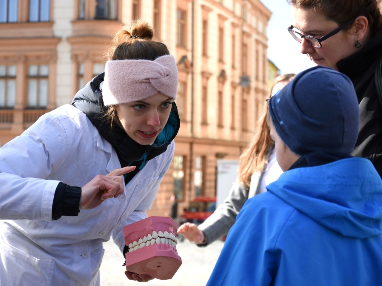 Víte, jak si správně čistit zuby? A používáte mezizubní kartáček? Nejen tyto dotazy zněly olomouckým Dolním náměstím, kde na celý den postavili svůj stánek plný kartáčků, past i letáčků s potřebnými informacemi studenti Zubního lékařství z Lékařské fakulty UP. Cíl již tradiční preventivní akce Ve zdravé Olomouci zdravý zub je prostý, ale důležitý – připomenout mladým i starým, jak správně provádět ústní hygienu coby jednu ze součástí péče o vlastní zdraví.