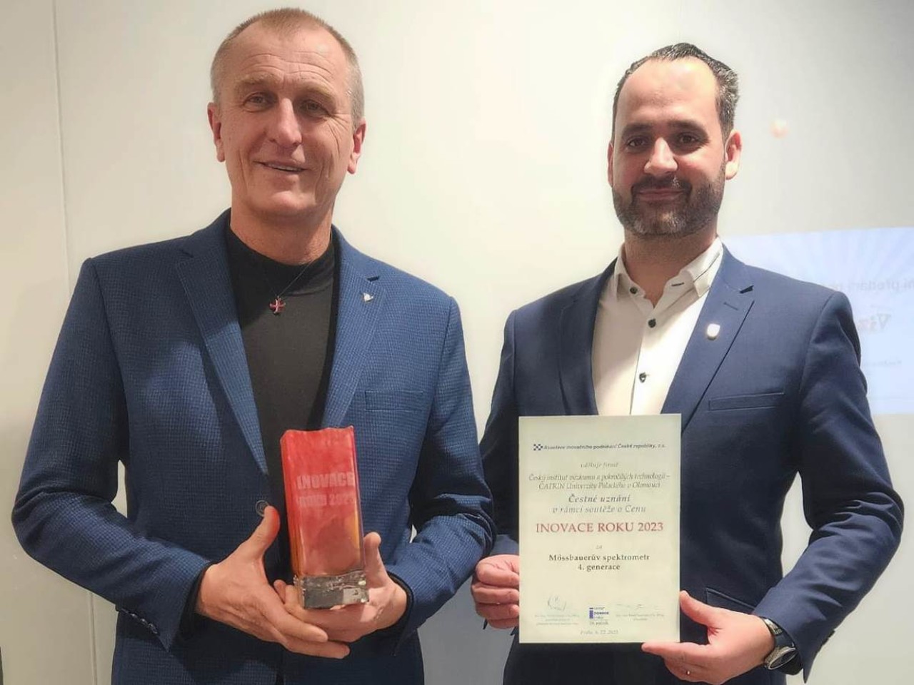 Čestné uznání za Mössbauerův spektrometr 4. generace získala CATRIN Univerzity Palackého v letošním ročníku soutěže Cena Inovace roku. Asociace inovačního podnikání České republiky, která soutěž pořádá, ocenila celkem deset ze 134 posuzovaných inovačních produktů. Cílem soutěže je ohodnotit a ocenit nejlepší inovační produkty v ČR, ve všech oborech.