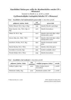 Kandidátní listina pro volby do Akademického senátu UP v Olomouci konané ve dnech 11. 3. až 18. 3. 2026 Cyrilometodějská teologická fakulta UP v Olomouci