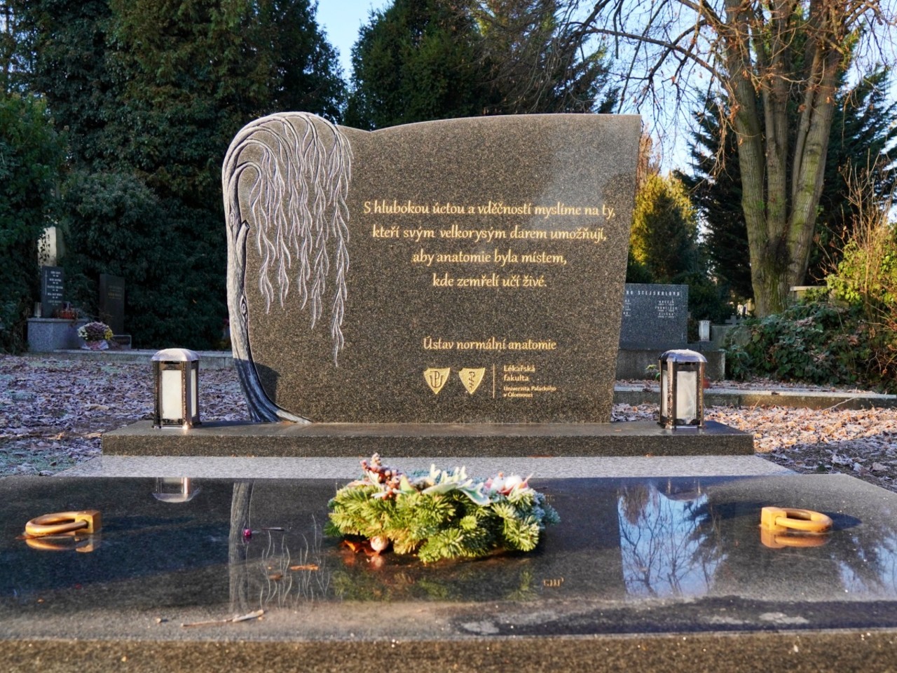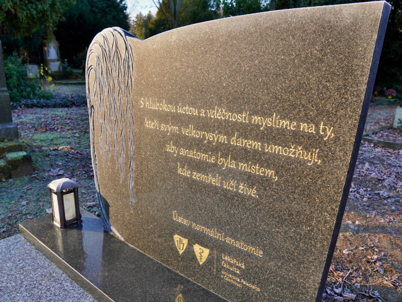 S hlubokou úctou a vděčností myslíme na ty, kteří svým velkorysým darem umožňují, aby anatomie byla místem, kde zemřelí učí živé. Tato slova jsou vytesána do náhrobního kamene pietního místa, které zřídil Ústav normální anatomie Lékařské fakulty UP na památku těch, kteří se rozhodli darovat své tělo pro vzdělávání budoucích lékařek a lékařů a rozvoj medicíny.