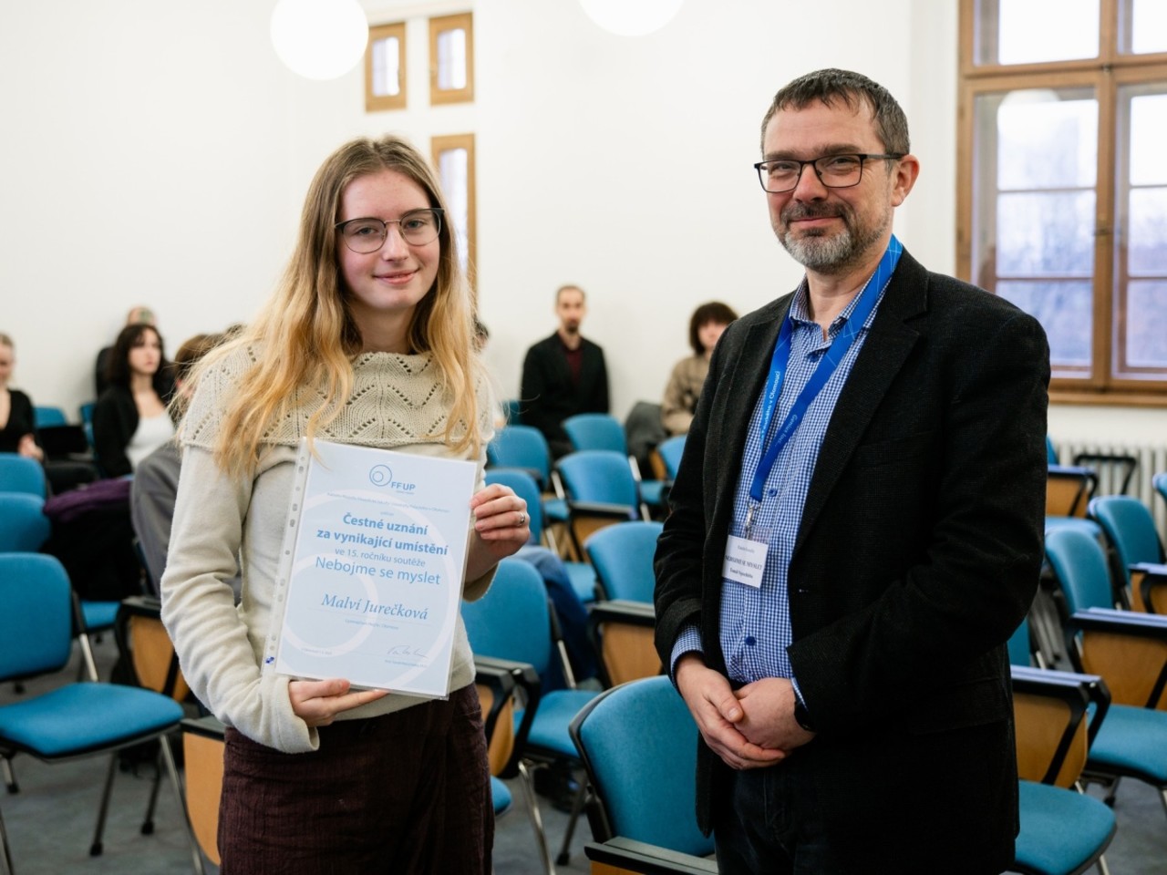 Katedra filozofie FF UP uspořádala již patnáctý ročník soutěže Nebojme se myslet. Studenti a studentky středních škol se tak věnovali úvahám, rozvíjeli své argumentační schopnosti a ukázali, že filozofie není jen o teorii, ale že jde o skvělý trénink kritického myšlení. Výherce této soutěže bude reprezentovat Českou republiku na International Philosophy Olympiad.