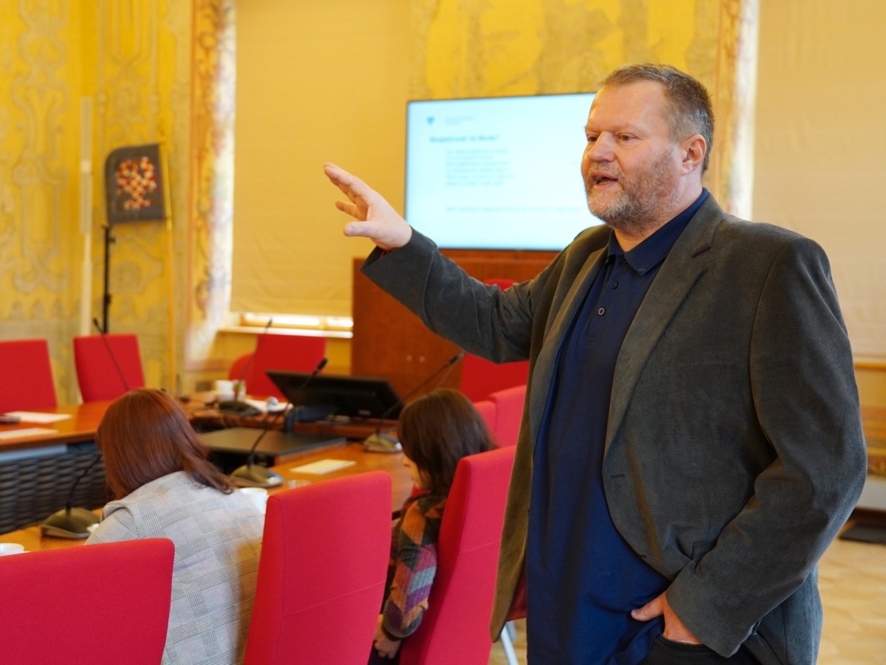 Zaměstnanci UP, včetně vedení, se mohli v miluém roce zúčastnit i kurzů zaměřených na bezpečnost. Lektor Miloš Drdla vysvětloval, jak se chovat v rizikových situacích. Školit bude i letos. Foto: Martin Višňa