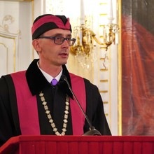 „Jste prvními absolventy prvního studijního programu akreditovaného v České republice v plně distanční formě. Prokázali jste, že distanční studium v online prostředí je plnohodnotnou formou studia se stejnými nároky jako studium prezenční a kombinované. Dokonce jsem slyšel, že to bylo náročnější než studium medicíny, ale nejsem si jist, jestli to nebyla nadsázka. Prokázali jste nicméně, jak moc se mýlili ti, kteří naši fakultu od začátku kritizovali za rozdávání akademických titulů za vysedávání u videa v obýváku na gauči,“ řekl při promocích Vít Hušek.