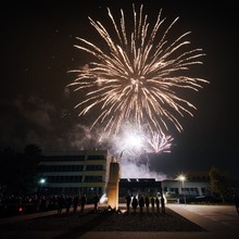 Několikadenní výroční vzpomínku na sametovou revoluci doplnil lampionový průvod, který se za doprovodu Vojenské hudby Olomouc vydal z náměstí Republiky k budově Právnické fakulty UP, někdejšímu sídlu komunistické strany. U tamního památníku bojovníků za svobodu a demokracii se pak uskutečnil pietní akt, během nějž vystoupili s projevy jak zástupci kraje, města, tak univerzity. Za bohaté účasti veřejnosti ještě před plánovaným ohňostrojem vzpomněli na Den boje za svobodu a demokracii a Mezinárodní den studentstva rektor Martin Procházka a členové Akademického senátu UP v čele s jeho předsedkyní Irenou Smolovou.
