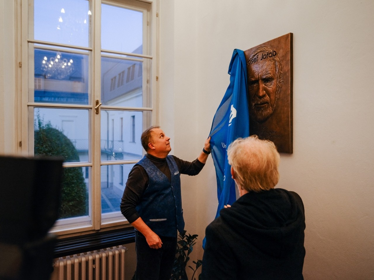 „V prostorách rektorátu si nyní připomínáme dvě nejvýznamnější osobnosti novodobé historie naší univerzity. Josefa Ludvíka Fischera, prvního rektora poválečné obnovené univerzity, a nyní přibyl i reliéf Josefa Jařaba, prvního svobodně zvoleného rektora po listopadu 1989. Já sám jsem se s ním poprvé setkal právě jako student během sametové revoluce a později ještě mnohokrát. Byl a stále je pro naši akademickou obec velkou inspirací,“ uvedl při odhalení plastiky Martin Procházka, rektor UP. Na náplavce i v budově rektorátu UP je dílo olomouckého výtvarníka Radomíra Surmy trvalou připomínkou skvělého člověka a zastánce vysokých morálních hodnot.