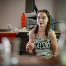 O zkušenosti se podělili i odborníci z Centra podpory studentů se specifickými potřebami. Jeho náplň prezentovala hostům Lucie Flekačová. Stejně jako na všech předchozích místech i zde bylo součástí programu setkání se studenty. Ti mluvili o svých zkušenostech z pohledu klienta a zároveň nabídli i pohled druhý – to, když se zapojili do práce centra jako asistenti.