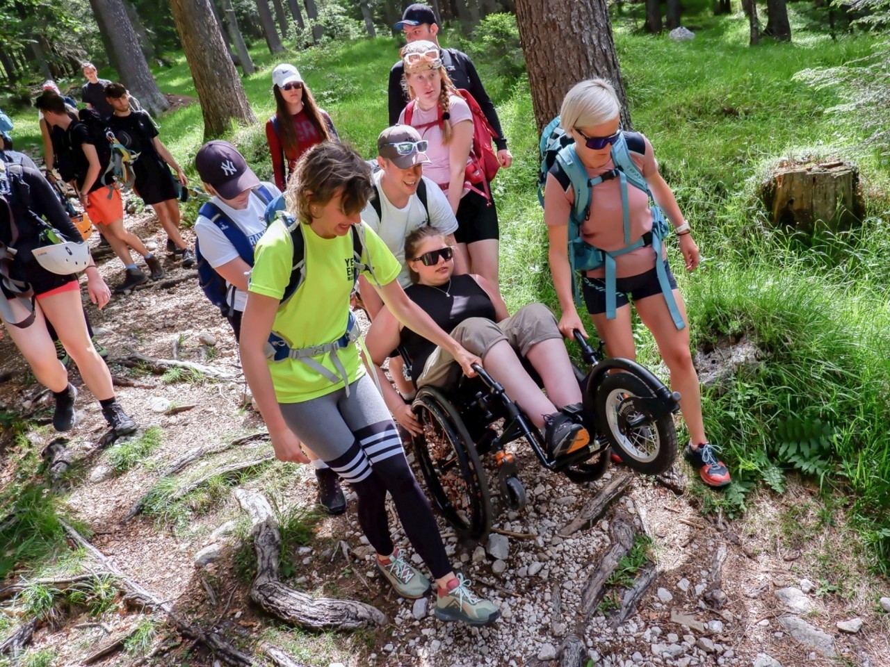 Neobvyklá výprava, jejímiž členy byli lidé na vozíku nebo se zrakovým či mentálním postižením, se pohybovala v okolí rakouského Villachu a Schladmingu a italského Toblachu. Ne vždy ale podle plánu. „Hned první den jsme museli improvizovat kvůli cyklistickým závodům, pro naše vyjížďky jsme hledali náhradní trasy. A i když byly delší, než jsme předpokládali, přežili jsme všichni bez úhony. Nutno ale říci, že jsme asi ani neočekávali, že půjde všechno tak, jak jsme si doma naplánovali,“ připustila za studentské organizátory expedice Jana Hrubá.