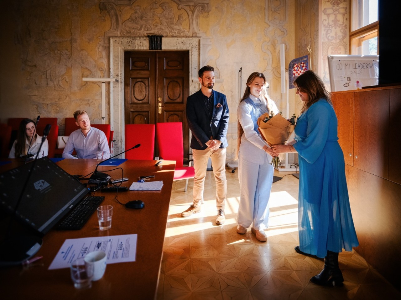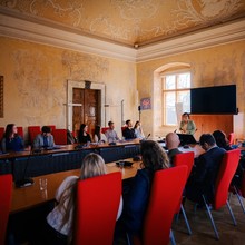 Dita Palaščáková při závěrečném setkání absolventů kurzu s vedením UP.