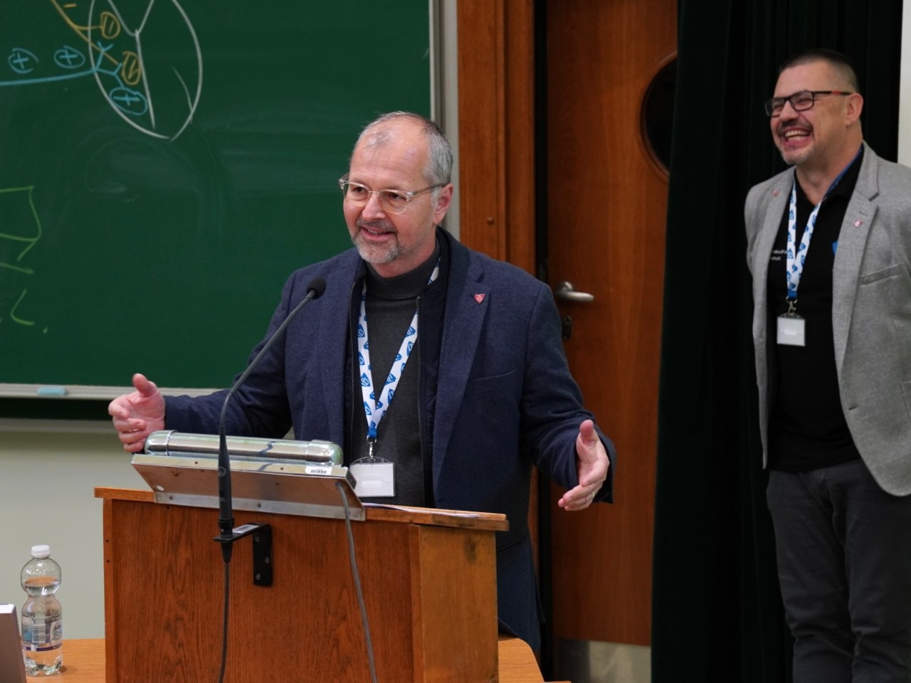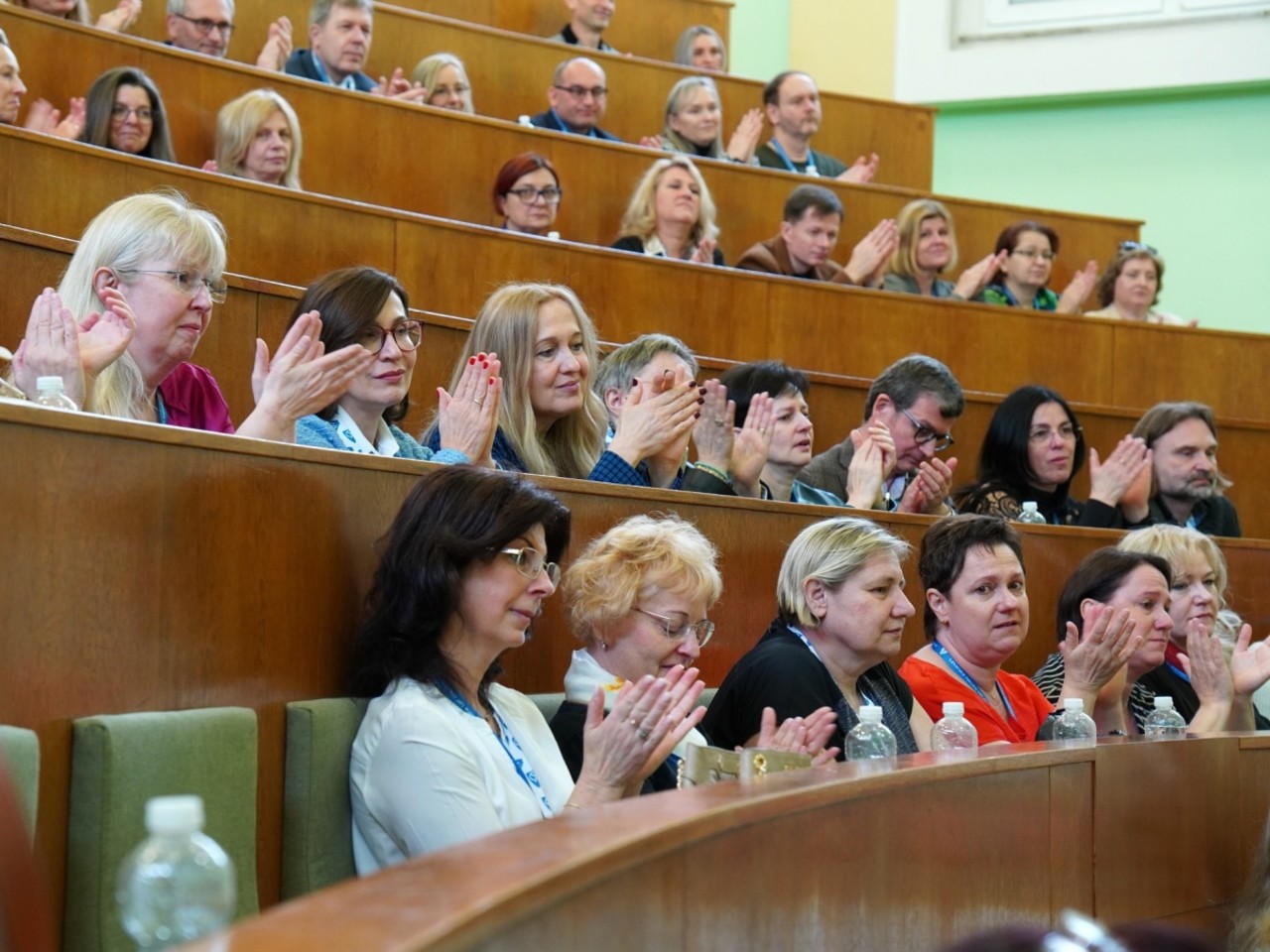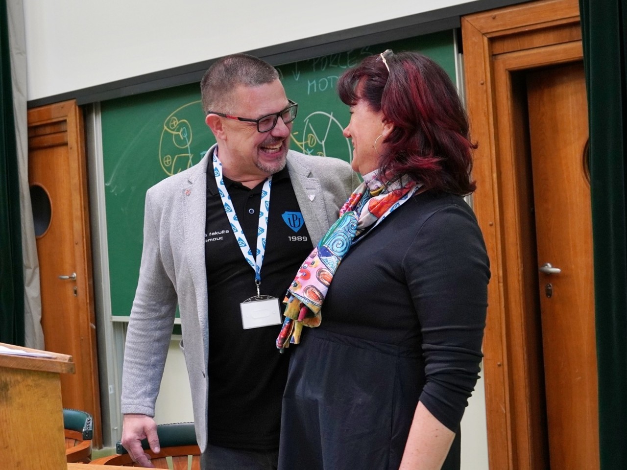 Ještě předtím se ale velká posluchárna doslova otřásla bouřlivým potleskem a výbuchy smíchu. Stačilo k tomu například jen, aby se za katedru postavil Petr Myšák, působící mimo jiné jako lékař litvínovských hokejistů. „Toto jsem si vždycky přál. Postavit se sem, kde stáli naši vyučující, a koukat na vás. Jsem strašně rád, že vás vidím,“ ujal se slova a připomněl, že byli poslední ročník, který vedle anatomie musel studovat také dějiny dělnického hnutí. A neopomněl zmínit ani několik olomouckých podniků, kam se spolužáky chodili po škole. Postřehy a vzpomínky přidali i další „třicátníci“ – Monika Machačová, Miroslav Havrlant nebo Bohdan Pomahač, který s manželkou Hanou, taktéž absolventkou, přiletěl z USA.