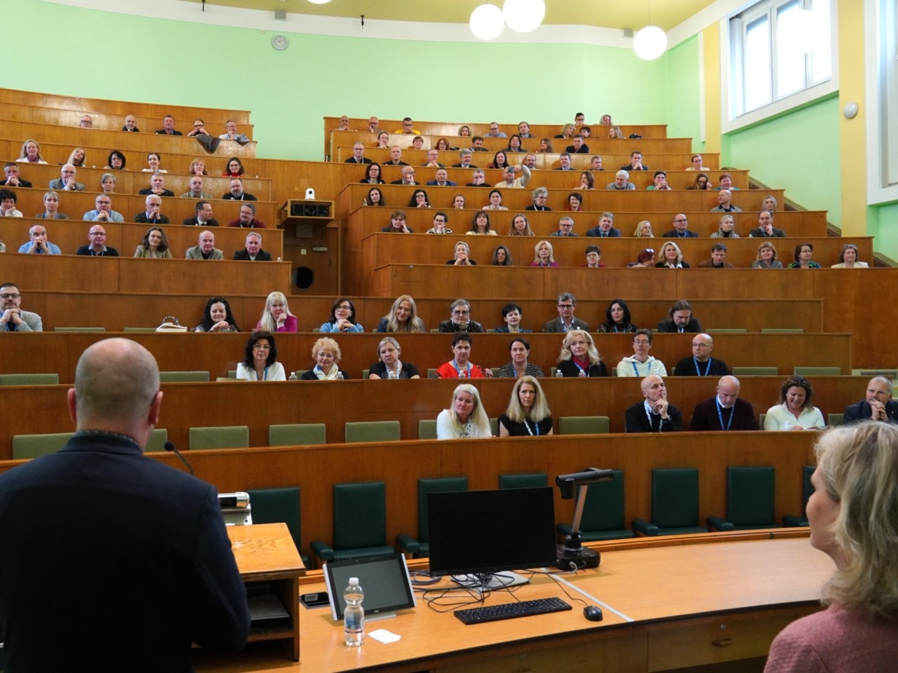 „Nepřijde vám ta posluchárna nějaká menší? – Takže se to nezdá jen mně! Míval jsem mnohem více místa na kolena,“ bavili se někdejší studenti medicíny, když během absolventského setkání procházeli prostory fakulty. Prohlídky Dostavby Teoretických ústavů, muzea anatomie a Centesima – centra telemedicíny, simulátorů a praktických dovedností navázaly na úvodní pozdravy ve velké posluchárně.