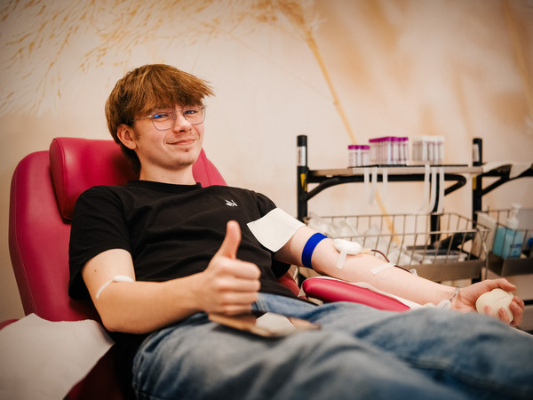 S prvními univerzitními dárci krve začal letošní Akademický týden UP. Během následujících dní budou mimo jiné předány ceny rektora, dojde na poděkování vědkyním a vědcům, kteří svou prací šíří dobré jméno univerzity, a jako tradičně na připomínku obnovení univerzity v roce 1946 budou zvonit zvony olomouckých kostelů (kompletní program týdne najdete zde). Tradiční součástí je právě také výzva Daruj krev s rektorem, kterou UP podporuje bezplatné darování nejvzácnější tekutiny. Během Akademického týdne UP by krev na Transfuzním oddělení Fakultní nemocnice Olomouc mělo darovat několik desítek studentů a zaměstnanců univerzity. První z nich v pondělí ráno přivítala primářka oddělení Dana Galuszková, prezident Českého červeného kříže Marek Jukl a kancléř UP Martin Tomášek.