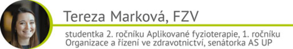 Když se teď v závěru magisterského studia ohlédnu zpět, tak musím říct, že UP je pro mě hlavně velkým překvapením. Od studia na vysoké škole jsem nečekala mnoho, jen že s trochou štěstí získám vzdělání ve vysněném oboru, bakalářský titul, a když to půjde dobře, tak i magisterský. Můj plán byl nějakým způsobem vystudovat, správně jsem si myslela, že to nebude zrovna nenáročné, prožít těch několik let v anonymitě, protože jsem se domnívala, že akademičtí pracovníci se o studenty vůbec nebudou zajímat, že lidé v ročníku budou spíš známí než přátelé… Místo toho jsem měla štěstí na mnoho akademiků, kteří kromě předávání svých zkušeností a schopností formovali i mou osobnost. Podařilo se mi navázat přátelství nejen se studenty z mého oboru a fakulty, za což jsem neskutečně vděčná. Na UP jsem mimo kvalitní vzdělání, které je podstatným předpokladem pro to, abych byla jednoho dne dobrou fyzioterapeutkou, získala spoustu zkušeností. Byly to zkušenosti hezké a pozitivní, ale i velmi negativní až bolestivé. UP považuji za místo, které mě utvářelo, utváří a ještě nějaký čas utvářet bude. Jak dlouhý ten čas bude, přesně nevím, ale jsem si jistá, že na vliv UP na můj život určitě nezapomenu.