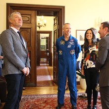To, že Feustelovi nezůstali jen v Praze, ale vydali se i do dalších míst, ocenil kromě rektora i rostlinný genetik Jaroslav Doležel, vedoucí olomouckého pracoviště Ústavu experimentální botaniky AV ČR, který přivítal hosty v zastoupení předsedkyně Akademie věd Evy Zažímalové. „To, co Andrew Feustel dokázal, nás motivuje překonávat hranice, které se zdají být nepřekonatelné,“ uvedl Doležel a připomenul také podíl tuzemských vědců a Akademie věd na kosmickém výzkumu. „Vím, že vaše univerzita je velmi kvalitní výzkumné pracoviště, věda zde má své důležité místo,“ řekl Andrew Feustel.