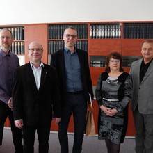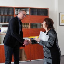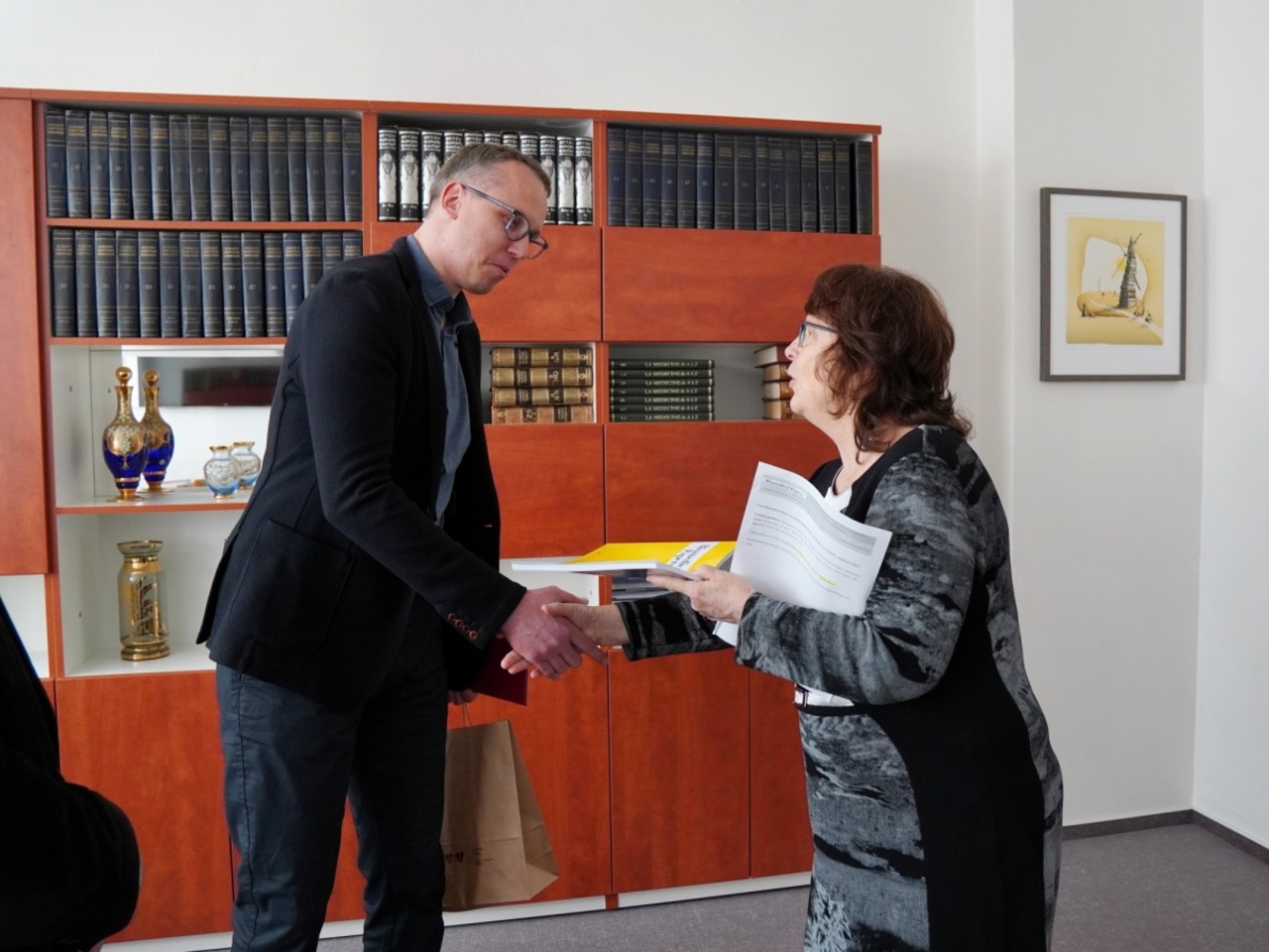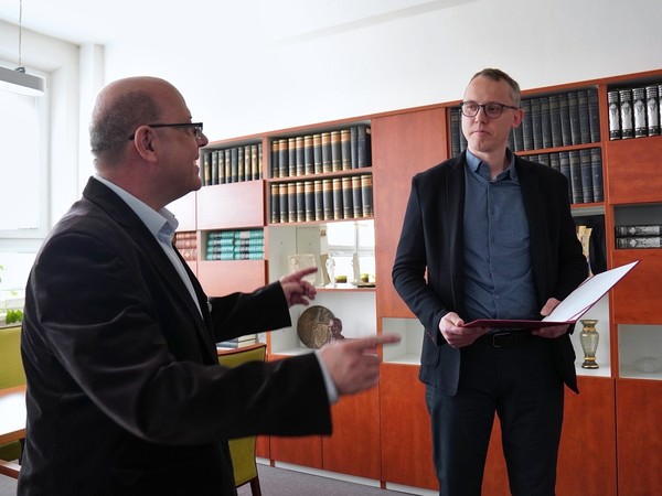 Cenu odborného časopisu Lékařské fakulty UP Biomedical Papers za nejcitovanější článek ročníku 2023 předal děkan LF UP Milan Kolář společně s Jitkou Ulrichovou, předsedkyní redakční rady, Martinu Harazimovi z Interní gastroenterologické kliniky Fakultní nemocnice Brno. Oceněný je korespondenčním autorem této studie, která se zabývá močovinovým dusíkem v krvi u pacientů se sepsí. Setkání v děkanově pracovně se zúčastnili také další zástupci redakční rady Biomedical Papers Jan Bouchal a Jan Mareš.