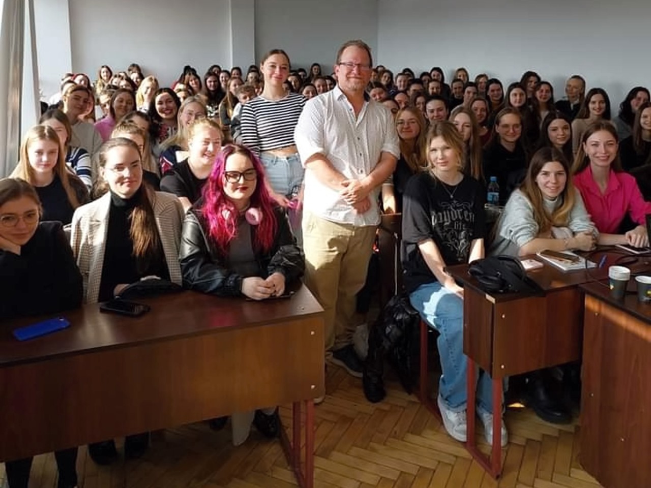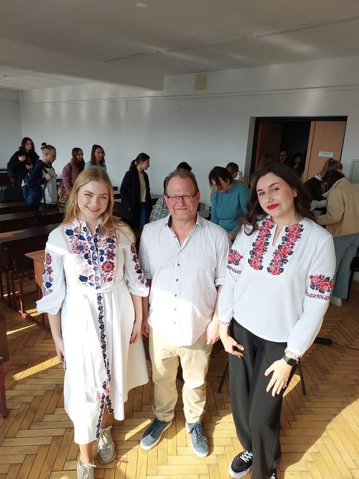 Později jsem se seznámil s tamním vedoucím katedry anglické filologie profesorem Jakivem Bystrovem, který mě sem nakonec pozval a vyřídil veškerou administrativu na ukrajinské straně (abych to uvedl na pravou míru, pozval jsem se spíš sám a pan profesor s mou návštěvou laskavě souhlasil). Musím zdůraznit, že mě podpořila i moje domovská katedra, především její vedoucí Ondřej Molnár i děkan naší fakulty Jan Stejskal s proděkankou Pavlínou Flajšarovou. Nejsložitější pro mě bylo obstarat si pojištění, protože Ukrajina je válečnou zónou. Cením si i pomoci kolegů, například Ema Jelínková slíbila v době mé tříměsíční nepřítomnosti odučit některé předměty a vykrýt tak část mé běžné pracovní náplně.