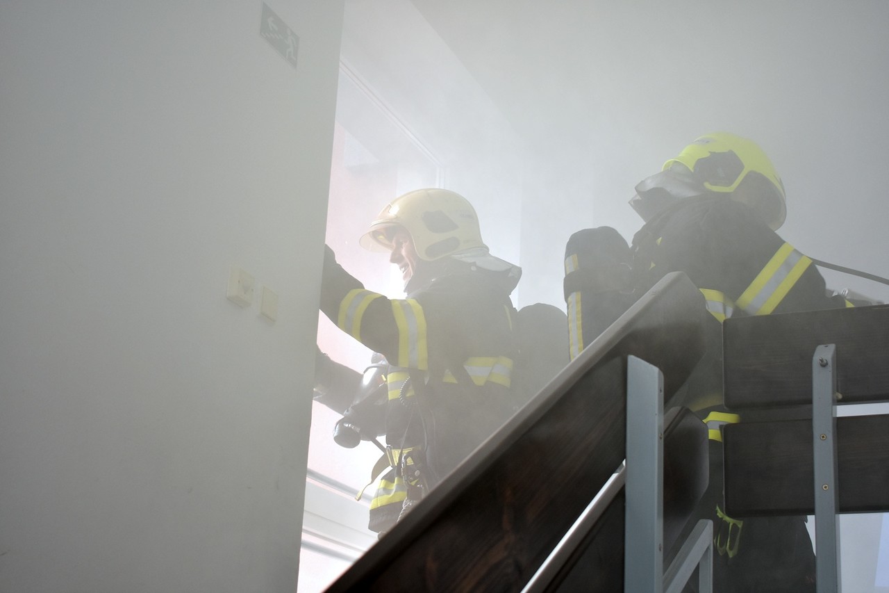 Součástí cvičení bude nejen evakuace osob z okna pomocí výsuvného žebříku/plošiny, kde jako figuranti poslouží příslušníci hasičů, ale také cvičné zakouření a evakuace vnitřních prostor celého desátého patra kolejí za využití značených evakuačních cest.