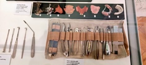 Polní vojenskou sadu chirurgických nástrojů pro lékařské zákroky v dutině ústní, šlapací zubní vrtačku nebo třeba cihlu z někdejšího sídla zubní kliniky si mohou návštěvníci prohlédnout na výstavě Historie a současnost zubního lékařství aneb Víme, jak na zubní kaz ve Vlastivědném muzeu Olomouc.