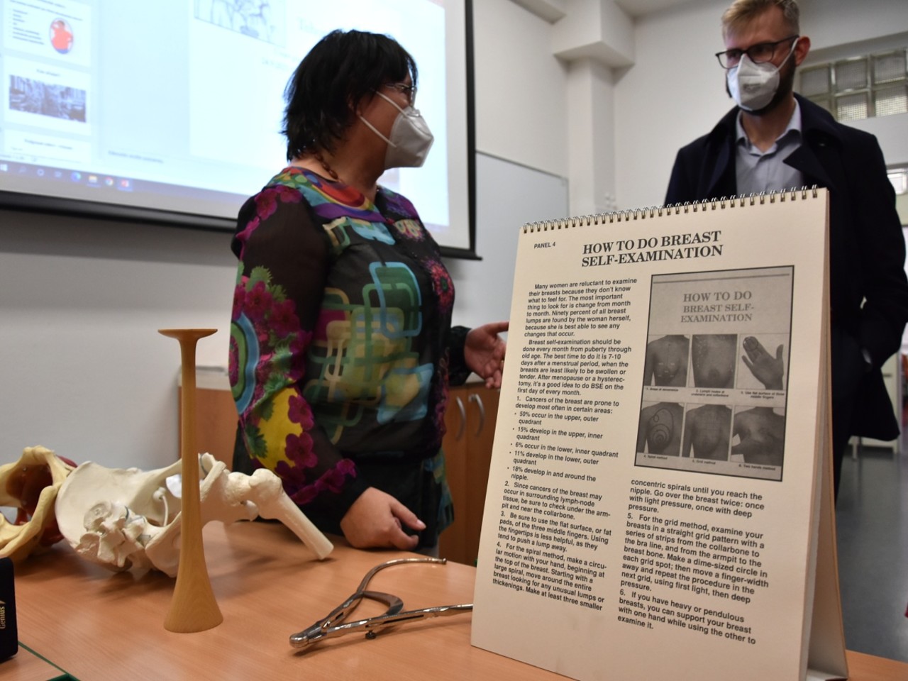 Nemocí a péče o zdravotní stav člověka se týkaly i prezentace fakulty zdravotnických věd. Na připravených stanovištích byla mimo jiné řeč o vývoji ženského těla, návštěvníci si také mohli díky výstavě různých pomůcek, ale i třeba díky sesterskému oděvu prezentujících studentek připomenout, jak šel čas v péči o pacienty. K tomu hrála živá hudba a tančilo se. FZV vysílala pro zájemce i online.