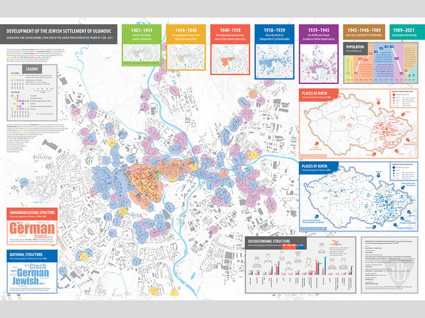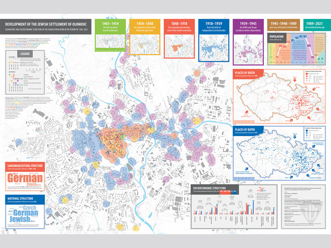 „Naše mapa byla publikována už v roce 2022, odborné veřejnosti ji ale prezentoval až aktuální článek v Journal of Maps, na jehož základě získala ocenění. Máme z toho velkou radost. Mapa představuje komplexní pohled na vývoj židovského osídlení v Olomouci od 12. století do současnosti. Zachycuje proměny prostorového rozložení židovské populace v závislosti na historických a politických změnách a doplňuje je analýzou migračních pohybů v rámci střední Evropy. Součástí jsou také grafické výstupy zobrazující demografický vývoj, socioekonomickou strukturu komunity a její postavení v rámci městské společnosti, stejně jako jazykově-kulturní diferenciaci obyvatelstva,“ shrnula za kolektiv tvůrců Ivana Cahová, vedoucí Centra judaistických studií Kurta a Ursuly Schubertových FF UP.