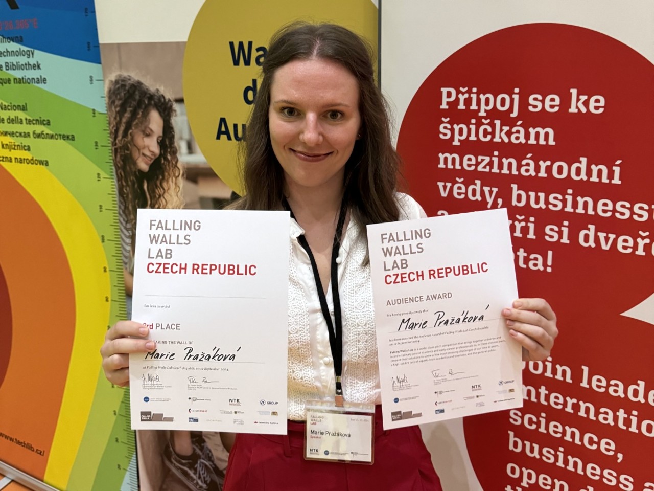 Třetí místo a zároveň Cenu publika v letošním českém finále mezinárodní soutěže Falling Walls Lab 2024, které se uskutečnilo v prostorách Národní technické knihovny v Praze, získala studentka Přírodovědecké fakulty UP Marie Pražáková s projektem Breaking the Wall of Manganese, Medicine & MRI. Mezi deset nejlepších účastníků se zařadil také Riccardo Fusco, student Ústavu molekulární a translační medicíny Lékařské fakulty UP, který působí ve výzkumné skupině Inovativní chemie v CATRIN UP.