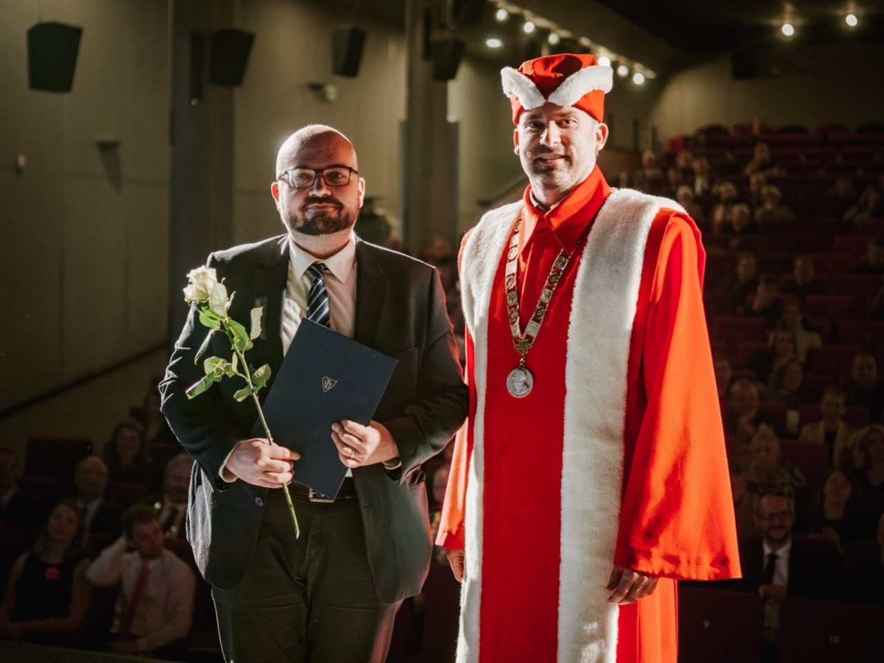 Miroslav Orel z katedry psychologie (na snímku vlevo) a Patrik Paštrňák z katedry historie, laureáti ocenění Teaching Awards UP 2025.
