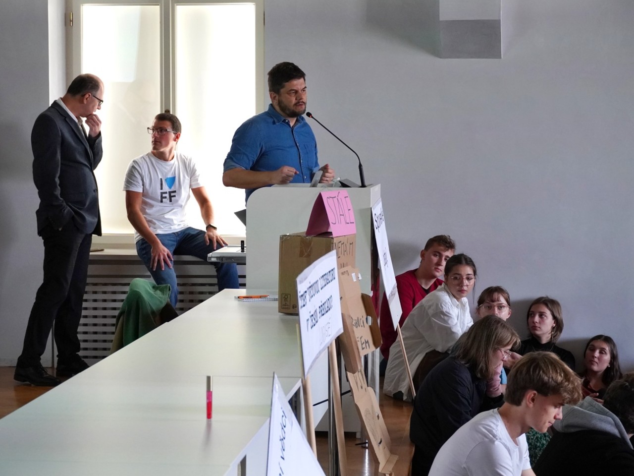 V diskuzi vystoupili i další akademici a také zástupci studentů. Mluvilo se mimo jiné o oslovování absolventů humanitních a společenských oborů k podpoře iniciativy, o nezahájení dalšího semestru, o nekonání státnic a nevydávání diplomů nebo o přesčasech spojených s administrativní zátěží. Po skončení setkání se jeho účastníci společně vyfotili na nádvoří rektorátu.