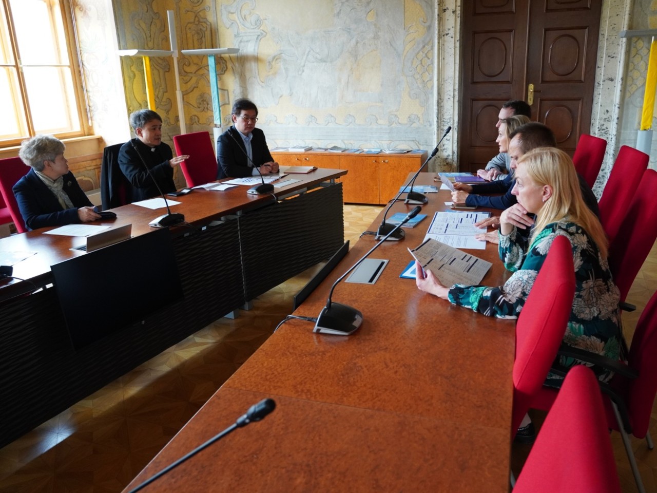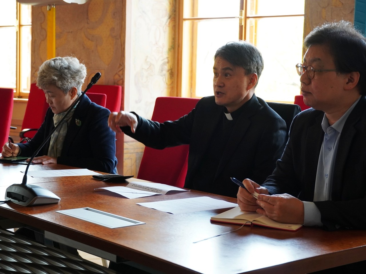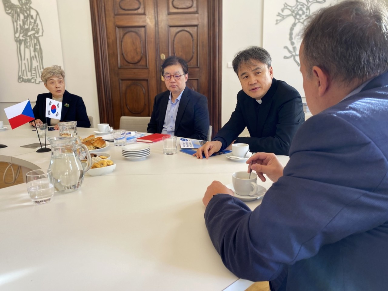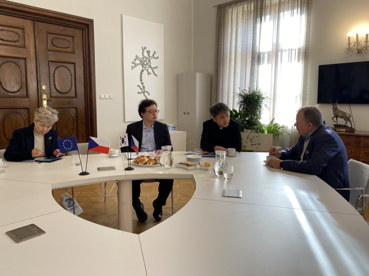 V návaznosti na nedávno uzavřené memorandum o porozumění (viz zde) přivítal rektor Martin Procházka na půdě Univerzity Palackého tříčlennou delegaci z Catholic University of Korea, kterou vedl rektor školy Fr. Luke Won Jong-chul. Hosté se setkali také se zahraničními proděkany čtyř fakult UP – Dominikem Opatrným (CMTF), Janou Kvintovou (PdF), Milanem Raškou (LF) a Jarmilou Zimmermannovou (FZV), s nimiž probírali možnosti výměnných pobytů akademiků a vědecké spolupráce.
