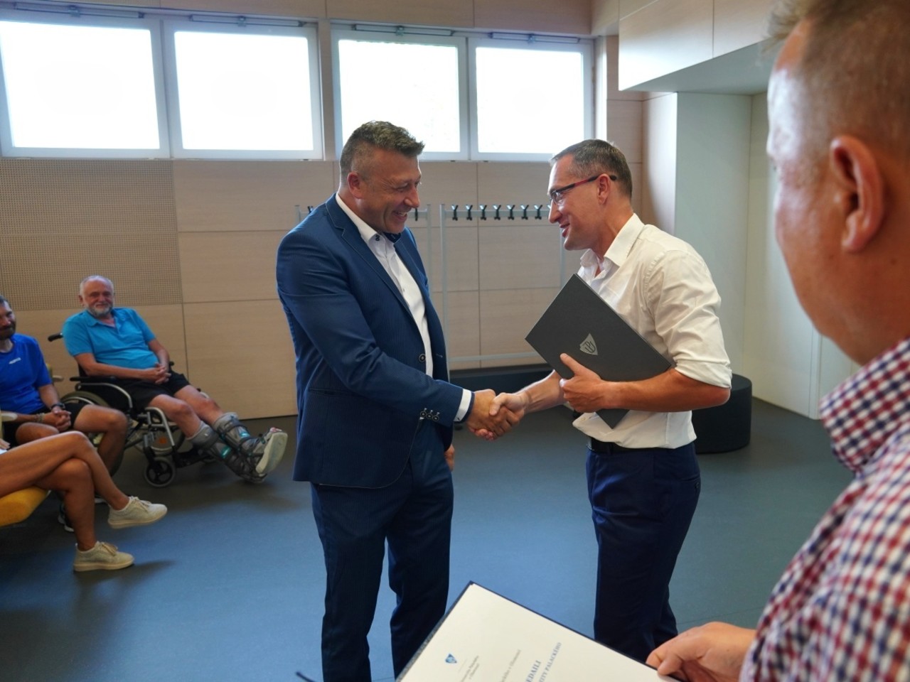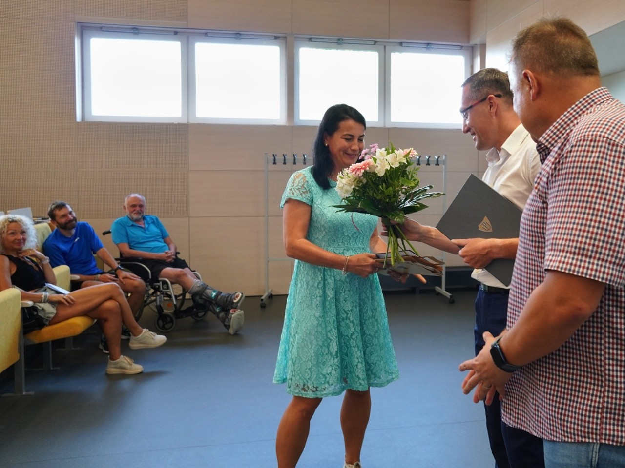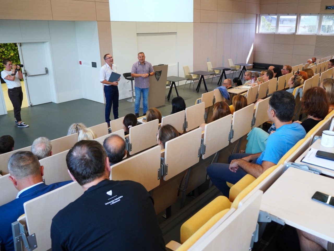Se začátkem nového akademického roku je na fakultě tělesné kultury již tradičně spojeno setkání její akademické obce. Děkan Michal Šafář svoji prezentaci zaměřil především na problematiku udržení mezd a chystaných investic, mezi kterými jsou mimo jiné venkovní úpravy areálu Kampusu Neředín či rekonstrukce výukových prostor ve středisku Pastviny. Přítomné seznámil také s aktuálními počty zapsaných studentů či (staro)novými zaměstnanci fakulty. Ještě před těmito tématy však společně s rektorem UP Martinem Procházkou, který byl hostem setkání, pogratuloval čtveřici akademiků k životním jubileím. Bronzovou medaili za zásluhy o rozvoj UP při té přiležitosti obdržela Jana Vašíčková z katedry společenských věd v kinantropologii, fyzioterapeuté Petr Uhlíř a Amr Zaatar a Miroslav Rončák z katedry rekreologie.