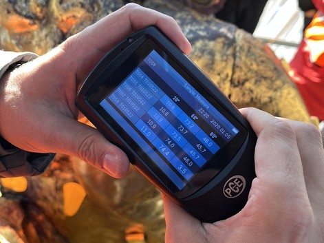 „V optické části jsme provedli úvodní měření pomocí glosmetru, zařízení určeného ke kvantifikaci lesklosti povrchů. Získaná data, která objektivně číselně popisují rozdíly viditelné pouhým okem, budou propojena s výsledky kolegů z katedry analytické chemie. Následně plánujeme srovnávací měření na in vitro vzorcích slitin s cílem určit, která z nich má nejpodobnější vlastnosti k původnímu materiálu a může být využita restaurátorem při obnově,“ uvedl Karel Lemr ze Společné laboratoře optiky.