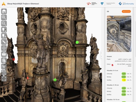 Katedra geoinformatiky všechna pořízená data zpracovala a začlenila do interaktivního 3D modelu sloupu Nejsvětější Trojice. „Ten slouží jako úložiště dat v podobě interaktivních vrstev, které lze snadno vyhledávat a vizualizovat. Pověření uživatelé tak mají přístup k jednotlivým měřením prostřednictvím přehledného zobrazení,“ uvedl Stanislav Popelka z katedry geoinformatiky.