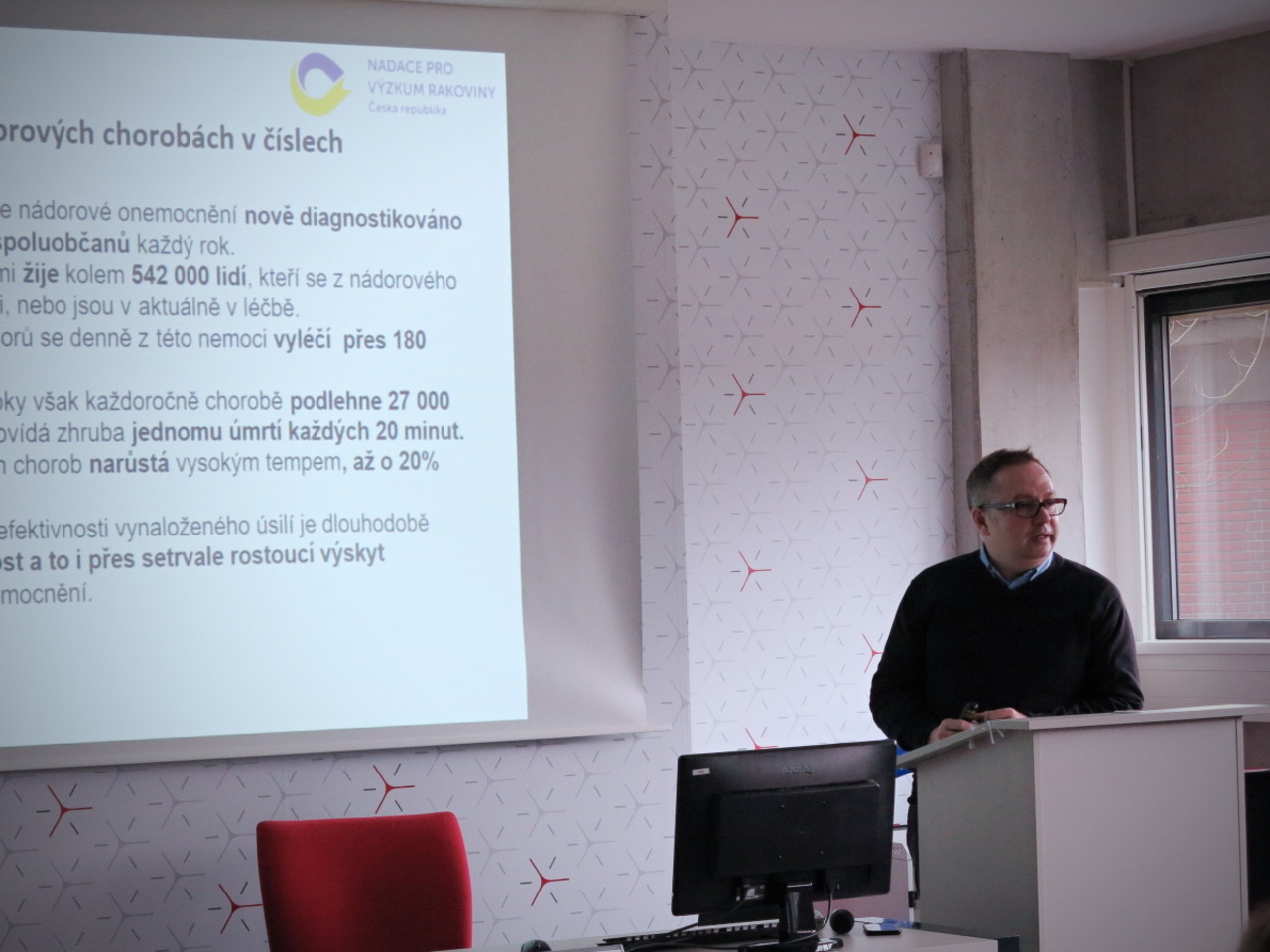 Blokem přednášek spojeným s diskuzí provedli zástupce přednosty Onkologické kliniky Karel Cwiertka, vedoucí Laboratoře molekulární onkologie a farmakogenomiky Beatrice Mohelníková Duchoňová, ředitel ÚMTM Marián Hajdúch nebo vědecká pracovnice ÚMTM Vladimíra Koudeláková. „Hovořilo se o příčinách vzniku nádorových onemocnění, jejich typech a možnostech léčby. Zazněly také informace z oblasti výzkumu tohoto onemocnění, jeho genetiky, zejména dědičně podmíněných forem nebo o nádorových onemocněních vznikajících na podkladě infekce lidským papilovirem - HPV, především o karcinomu děložního čípku, rekta a karcinomů ORL oblasti,“ popsal Peter Vanek.