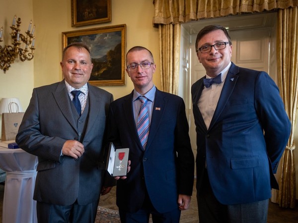 Diplomat Otakar Fojt převzal v tomto týdnu Řád britského impéria. Dvacet let pomáhá rozvíjet česko-britské vztahy v oblasti vědy, moderních technologií a inovací, za své úsilí byl vyznamenán Jeho Veličenstvem králem Karlem III. Řád převzal v sídle britské ambasády v Praze z rukou britského velvyslance Matta Fielda. „Je to výjimečná událost. Od roku 1917, kdy byl řád založen, se této pocty od britských panovníků dostalo jen několika desítkám Čechů. Jsou mezi nimi českoslovenští letci RAF, účastníci odboje a další významné osobnosti. My jsme hrdí na to, že máme doktora Fojta ve Správní radě UP. Ze srdce mu k vyznamenání gratuluji, nepochybně si takové ocenění zaslouží,“ uvedl rektor UP Martin Procházka. Otakar Fojt je od roku 2003 vědeckým atašé britské ambasády v Praze. Žije s rodinou v Olomouci, je také předsedou Správní rady Univerzity Palackého. Co obnáší práce vědeckého diplomata jste se mohli dozvědět v dubnovém čísle univerzitního magazínu Žurnál UP, v němž jsme přinesli velký rozhovor s Otakarem Fojtem. Připomenout si ho můžete tady.