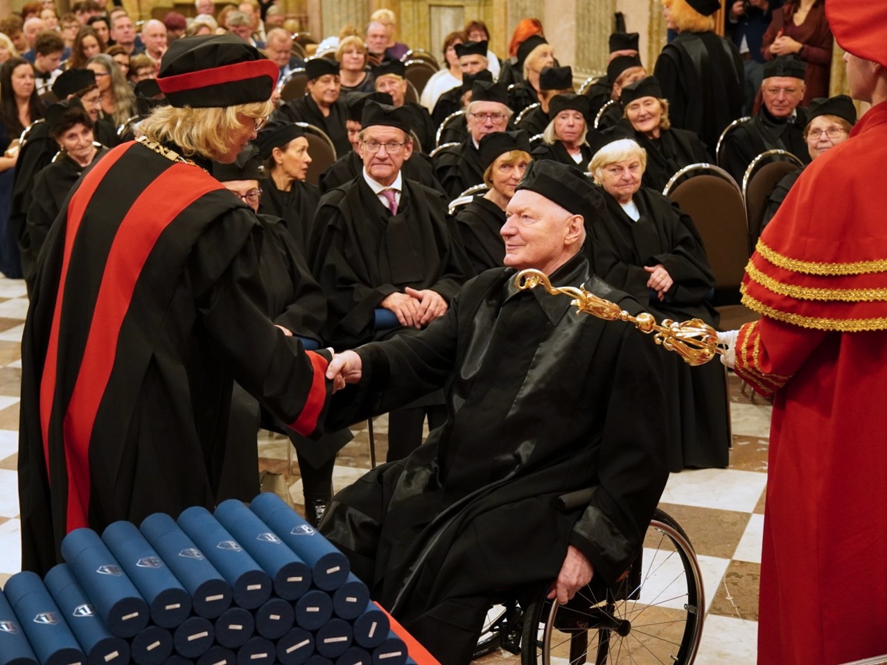 „Velmi si vážím toho, že jsem měl tu čest vás po padesáti letech promovat, a hluboce se skláním před vaší prací a vším, co jste učinili v průběhu vašeho života. Jsem hrdý na to, že jste absolventkami a absolventy naší lékařské fakulty,“ dodal děkan při přípitku.