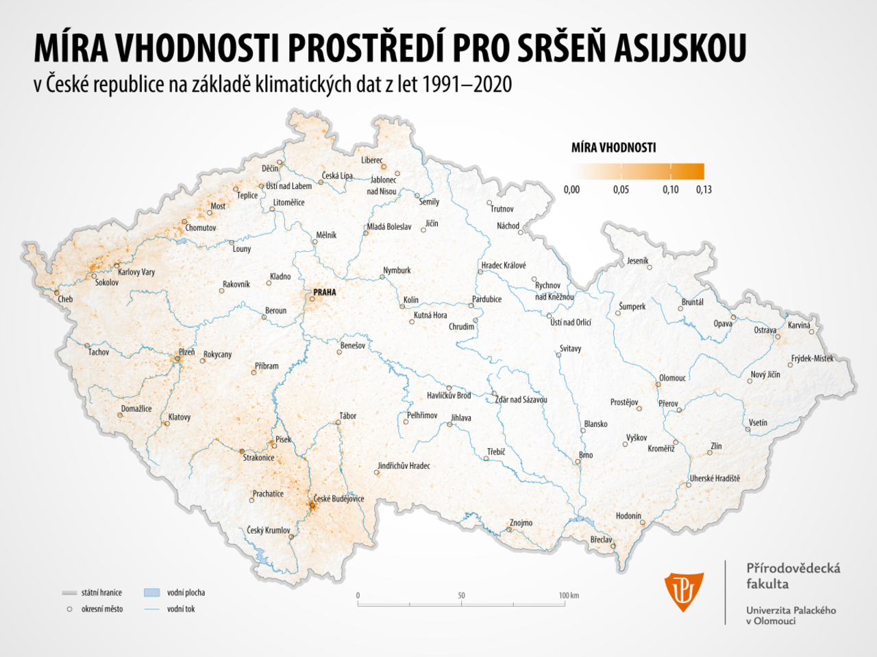 „Přítomnost sršně asijské na Plzeňsku potvrzuje správnost naší predikce, která poukazuje na zvýšené riziko právě na západě Česka, a to zejména v okolí městských oblastí,“ uvedl Jan Brus z katedry geoinformatiky přírodovědecké fakulty.