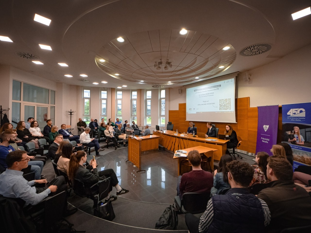 Návštěvu předsedy Senátu na Univerzitě Palackého zakončil potlesk zaplněné rotundy a poděkování děkana Václava Stehlíka za návštěvu fakulty, setkání se studenty a zajímavou přednášku.