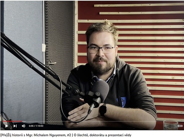 Doktorandi katedry historie FF UP Barbora Dietrichová a Libor Denk vytvořili zajímavý podcast s názvem (Pře)/Žij Historii. Zaměřují se v něm na prezentaci nejrůznějších výzkumů, a to s důrazem na jejich společenský přínos. O Akademii věd ČR a vysokých školách hovořil v prvním díle uvedeného pořadu Vojtěch Kessler z Historického ústavu AV ČR, do druhého dílu přijal pozvání doktorand FF UP Michal Nguyen, který se ve své disertační práci zabývá tématem inaugurace moravských zemských hejtmanů v 18. století. Podcasty můžete sledovat zde.