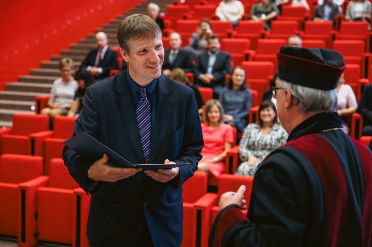 Stříbrnou promoci si nenechalo ujít třicet čtyři bývalých studentů přírodovědecké fakulty. Mezi nimi i ředitel Základní školy a Mateřské školy Bílá Třemešná Emil Kudrnovský. „Do Olomouce se vždy rád vracím, protože jsem zde pobýval přes jedenáct let. Nejprve jsem studoval obor Matematika – zeměpis a poté obor Geoinformatika. Chtěl jsem se vidět spolužáky, protože jsme se během těch pětadvaceti let neviděli,“ uvedl Emil Kudrnovský.