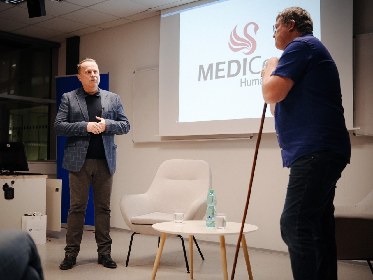 Atestovaný plastický chirurg, který působí na soukromé klinice plastické chirurgie v Ostravě, představil posluchačům ve výukových prostorách Teoretických ústavů LF důležitou, byť ne zcela obvyklou část svého profesního života. Odborník, který se specializuje na mikrochirurgii a estetickou chirurgii, totiž v roce 2018 založil humanitární organizaci Medicent Humanity. Ta se zaměřuje na složité operační zákroky v rozvojových zemích sužovaných válkou nebo zdravotnickými krizemi, spolu s dalšími specialisty z celé Evropy v rámci těchto výjezdů také školí místní lékaře.