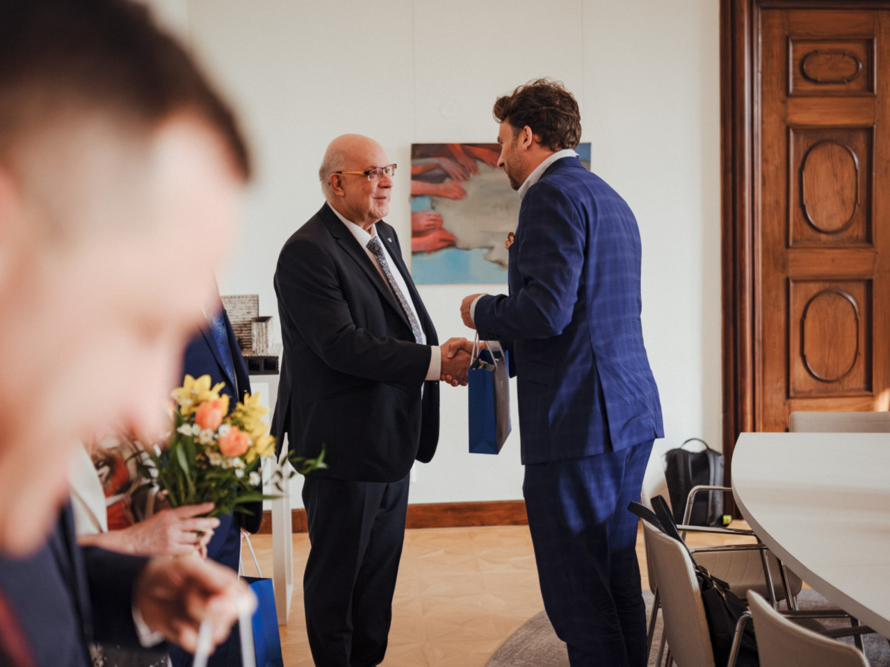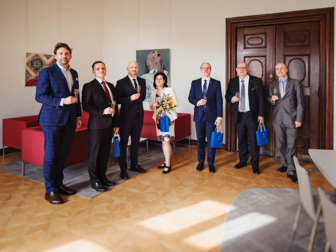 Rektor Michael Kohajda se setkal s nově jmenovanou profesorkou a profesory, kteří své jmenovací dekrety převzali v závěru minulého roku. Během neformálního posezení společně s prorektorem pro vědu, tvůrčí činnost a transfer znalostí Jiřím Drábkem zabrousili nejen do témat týkajících se oborů jmenovaných, ale především přítomným popřáli, ať se jim i nadále daří nejen v pracovním životě. Setkání se zúčastnila lékařka Jana Petřková a přírodovědci Petr Bednář, Radovan Herchel a Petr Marek, kteří působí na UP, a také ostravský neurolog Václav Procházka, který v Olomouci profesorské řízení absolvoval. Dalších pět jmenovaných se ze setkání omluvilo. Novou profesorku a profesory UP i odborníky z jiných univerzit, kteří byli jmenováni na návrh Vědecké rady UP, jsme krátce představili zde.