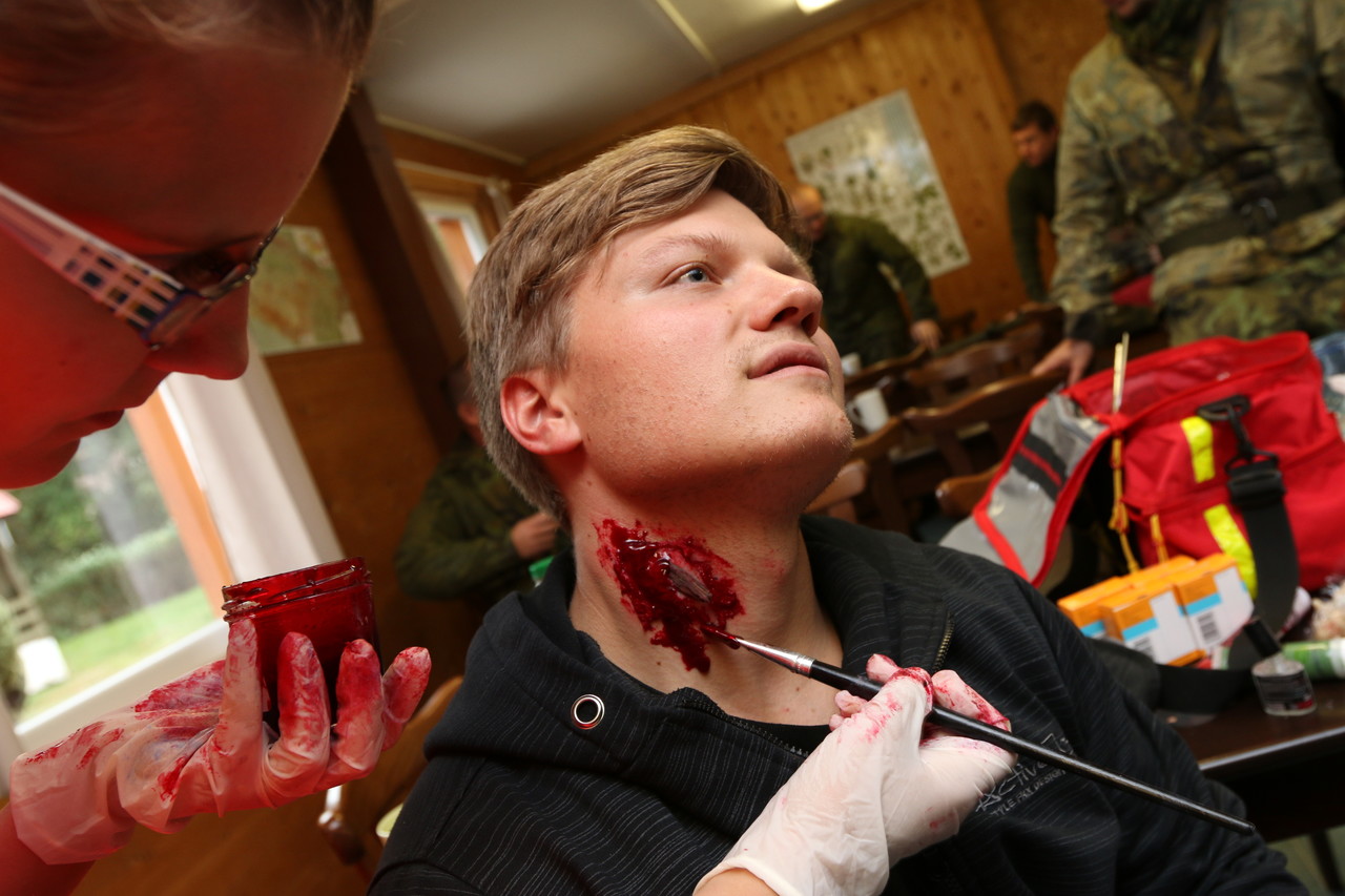 První z nich byl zaměřený na poskytování první pomoci v bojové situaci – obsazení povstaleckého tábora armádou. Dozorovaný byl experty ze Zdravotnické a záchranné služby Olomouckého kraje. Zjednodušeně šlo o to, že armáda, kterou představovali studenti Univerzity obrany v Brně, měla za úkol obsadit povstalecký tábor, kde povstalce „hráli“ vojenští právníci Armády ČR. V táboře se nalézali zranění civilisté, jejichž role náležely nám studentům. Scénář se opakoval několikrát, vždy s drobnými modifikacemi. Následně se vše vyhodnotilo a zakončilo krátkou přednáškou na téma první pomoci v krizových situacích.