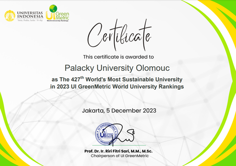 Dobré hospodaření s odpady a energiemi, zeleň v kampusech nebo vytvoření strategie a reportu udržitelného rozvoje přinesly Univerzitě Palackého kladné body v hodnocení udržitelnosti. Díky nim se posunula v žebříčku UI GreenMetric World University Rankings o 119 příček nahoru a obhájila čtvrté místo mezi českými univerzitami, a to i přes stoupající počet hodnocených škol.