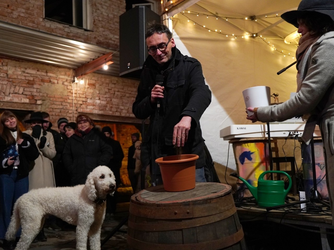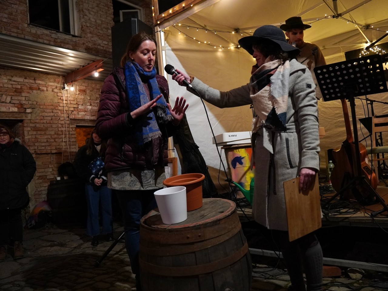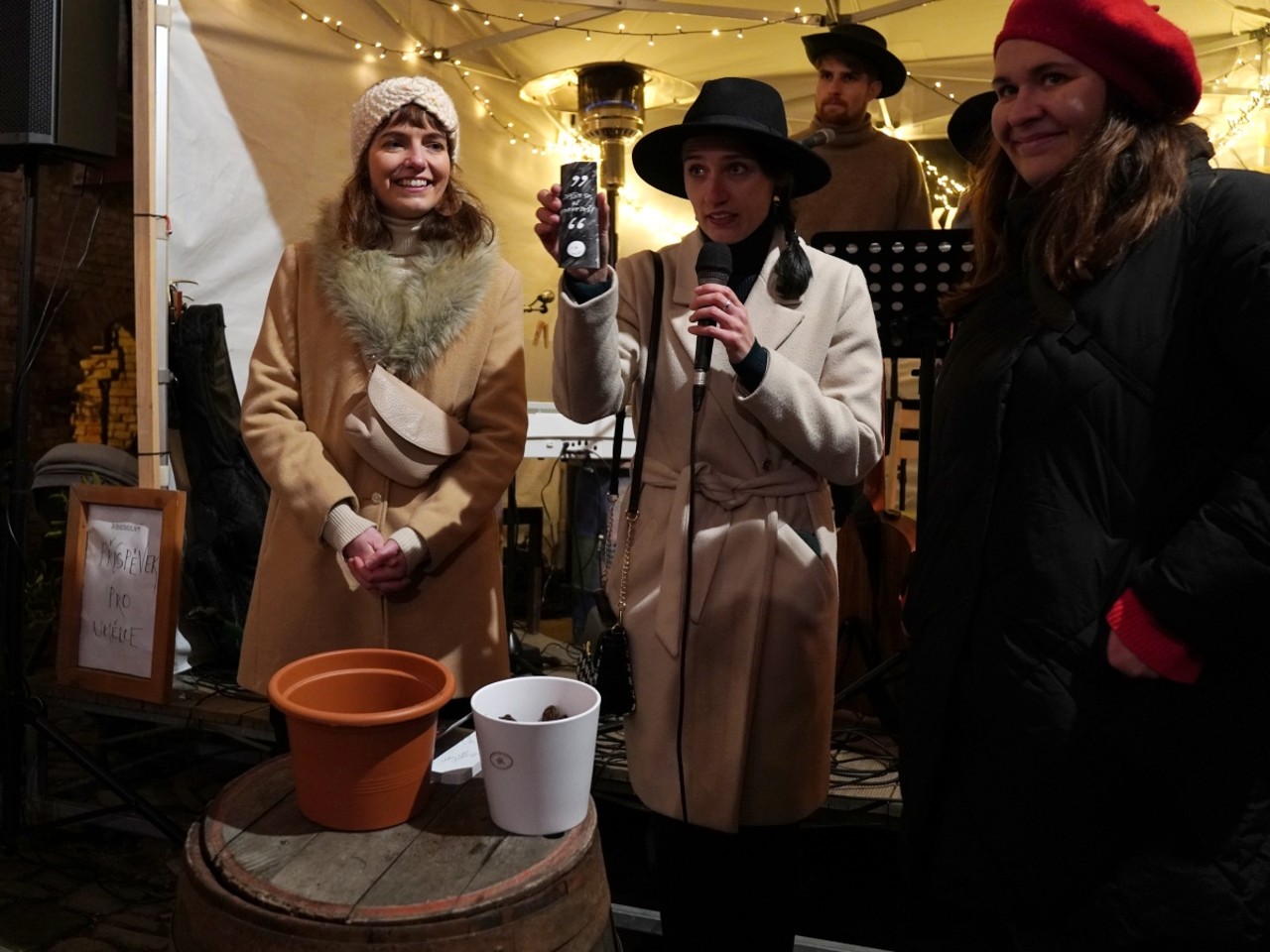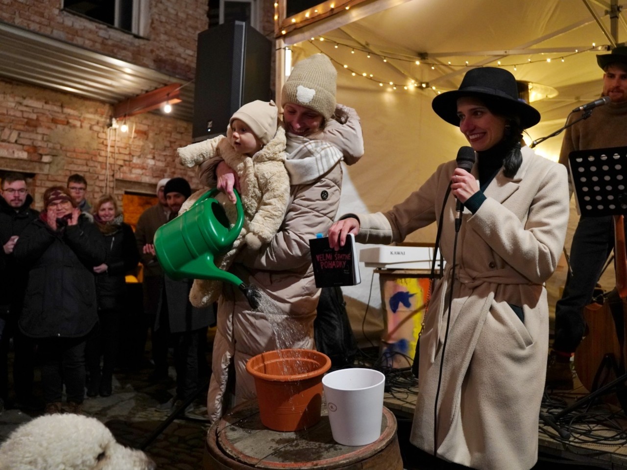 Na zaplněném, adventem prodchnutém Olodvorku vyrostla kniha. Tedy ona „rostla“ už nějakou dobu, ale v centru Olomouce před zraky a s přičiněním řady přátel, příznivců, spolužáků, vyučujících a příbuzných své Velmi špatné pohádky autorka Marta Sýkorová, doktorandka Cyrilometodějské teologické fakulty UP a loňská stipendistka Nadačního fondu UP, pokřtila. Mezi těmi, kdo symbolicky přidali do květináče životadárnou půdu a s ní i přání nejen spokojených a obohacených čtenářů, byl děkan CMTF UP Vít Hušek, koordinátorka NF UP Katrin Stark nebo Klára Maliňáková z CMTF UP, která autorku do Olomouce přivedla (viz dřívější medailonek). O zalití semínka, z něhož kniha vyrostla, se pak postarala sestra autorky s malou neteří. Během příjemného večera Marta Sýkorová ukázala i dalších ze svých talentů, když společně s duem mimů jednu z pohádek přečetla, resp. předvedla, taktéž zazpívala a zahrála se svou kapelou Dobrá otázka. Vystoupili i další hosté, došlo na koncerty, slam poetry a také na dražbu jednoho ze tří prvních výtisků knihy. Náklad se totiž teprve tiskne, a tak si zájemci prozatím mohli domů odnést záložku se semínkem. Velmi špatné pohádky vycházejí za podpory NF UP u nakladatelství Malvern, u něhož si lze již také knihu předobjednat.