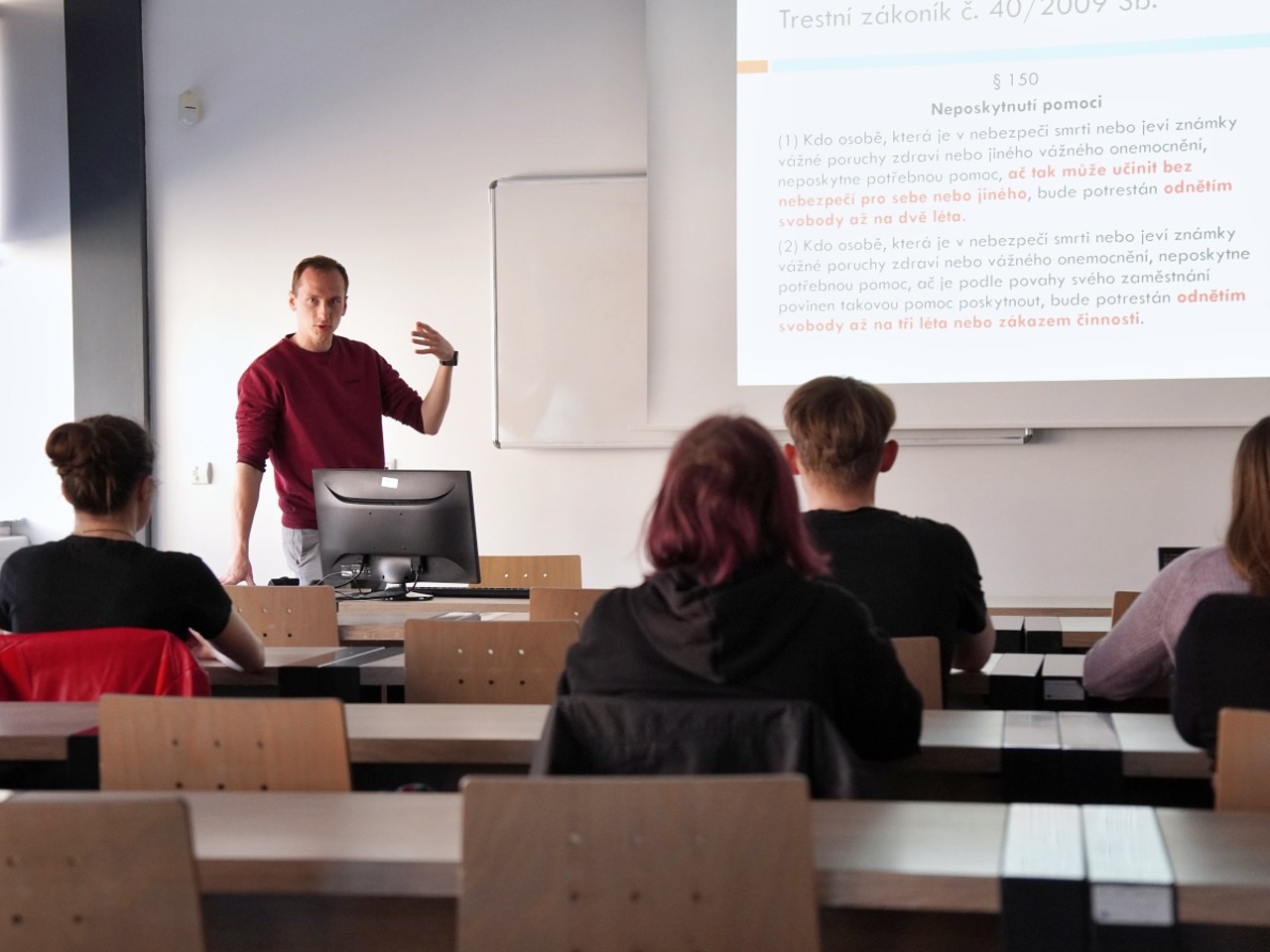 Patnáctka studujících absolvovala kurz první pomoci Neznáš, nezachráníš!, který připravil Spolek mediků LF UP. Poté, co si vyslechli krátkou teoretickou přednášku a na stanovištích vyzkoušeli základy ošetření zranění a záchrany života, si otestovali, jak by řešili situace, které je mohou potkat v běžném životě. V modelových situacích, kterými výuková akce vyvrcholila, se museli popasovat s autonehodou, matkou s dusícím se dítětem a kolapsem seniora za „asistence“ dvou opilých slečen. Kurz Neznáš, nezachráníš! pro studenty a studentky UP patří k pravidelným akcím, které Spolek mediků LF UP pořádá, více o činnosti spolku se dozvíte zde.